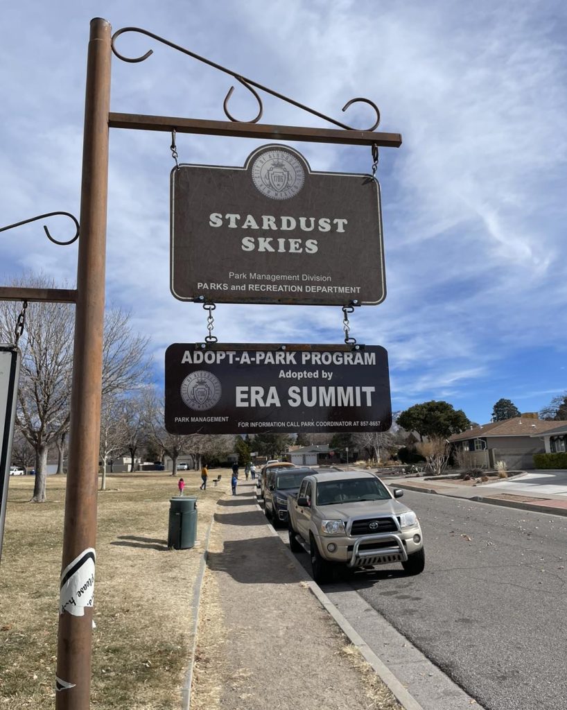 At ERA Cares NM, we believe that giving back to our community goes beyond financial donations-it's about investing time and effort to make a difference where we live. That's why we've adopted Stardust Skies Park, committing to keeping it clean and beautiful for everyone to enjoy. Our team regularly volunteers to maintain the park, ensuring it remains a safe and welcoming space for families, neighbors, and visitors. Through these efforts, we are proud to contribute to the well-being of our community and make a lasting, positive impact in the place we call home.